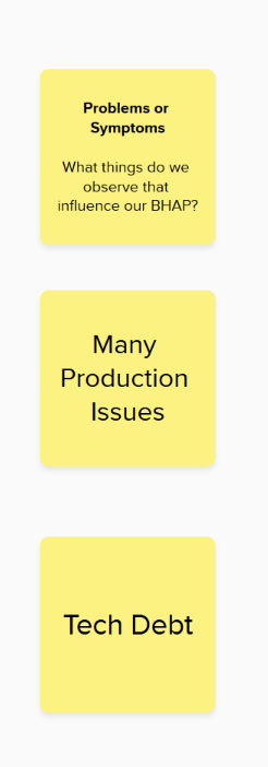 When you have everyone in a room, list all all the symptoms and problems that are related to your BHAP. What symptoms or problems do we observe that influence our BHAP?
