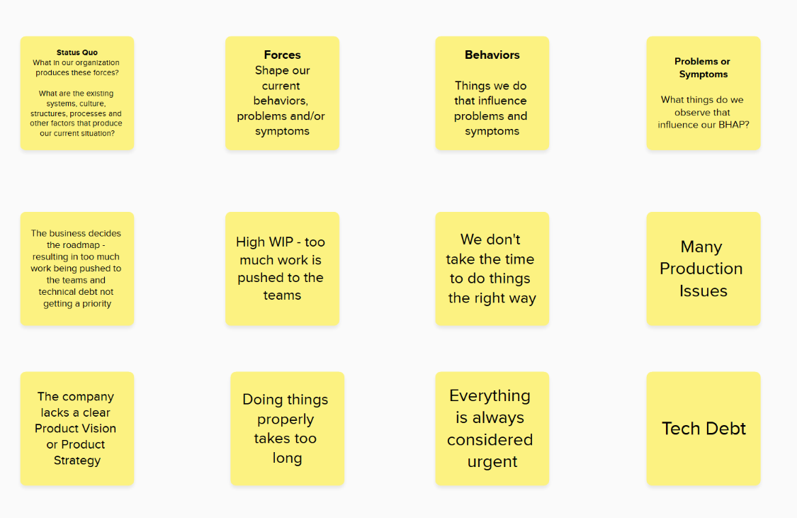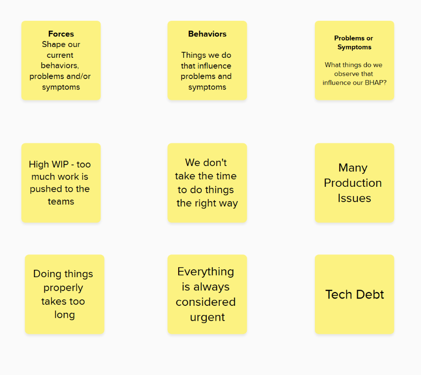 You may decide to move some of the existing Problem or Symptoms to the Forces bucket, if you feel it fits better. But as I said, don’t have huge discussions about it, it doesn’t really matter, as long as the relationships and interactions are accurate.