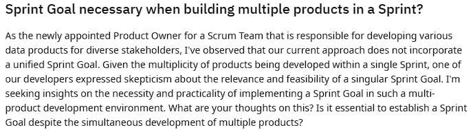 A reddit user asks: "Is it okay to not use Sprint Goals when you do Scrum?".