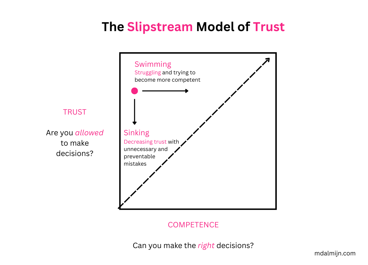 The Slipstream of Trust is where you can safely grow Competence and Agency. You have enough freedom to experiment grow and learn, but not so much freedom that it feels like you’re nearly driving off a cliff.