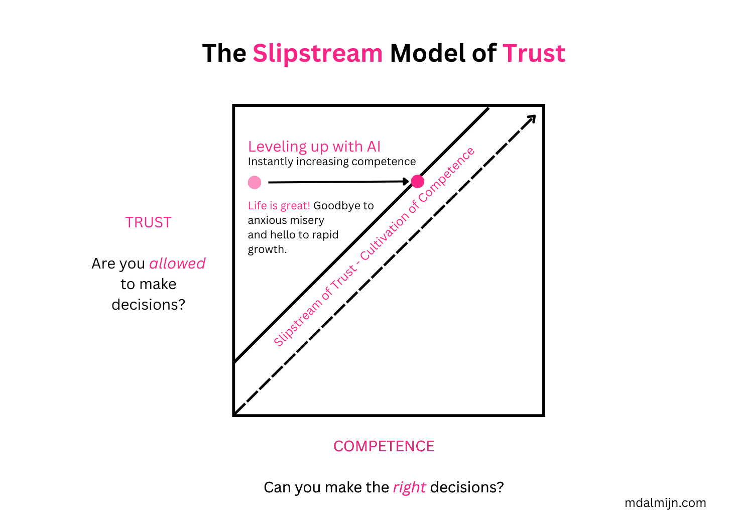 When you’re in the Slipstream of Trust: as you gain more Competence, you will get more Trust and as you gain more Trust you can gain more Competence, which ultimately will allow to develop the high Agency environments that will benefit the most from AI.
