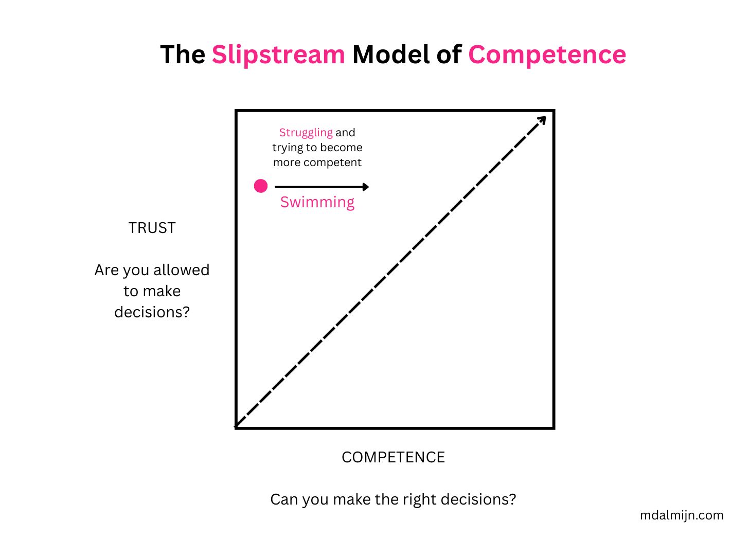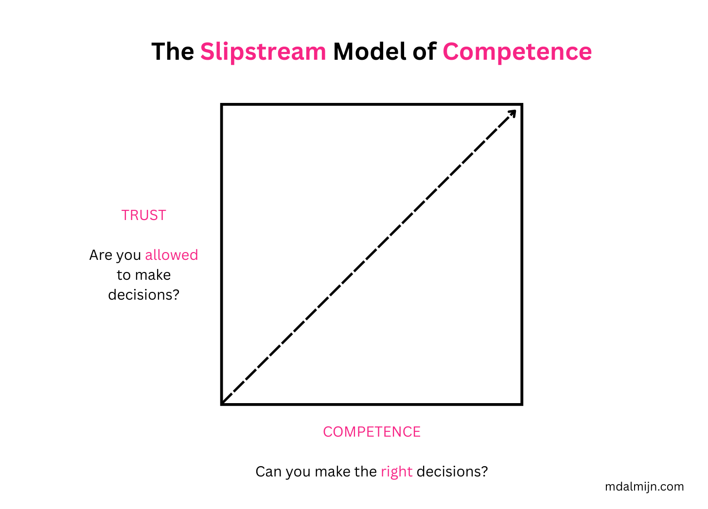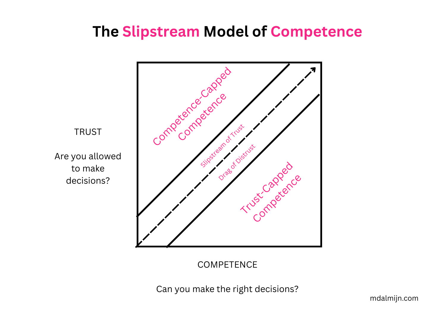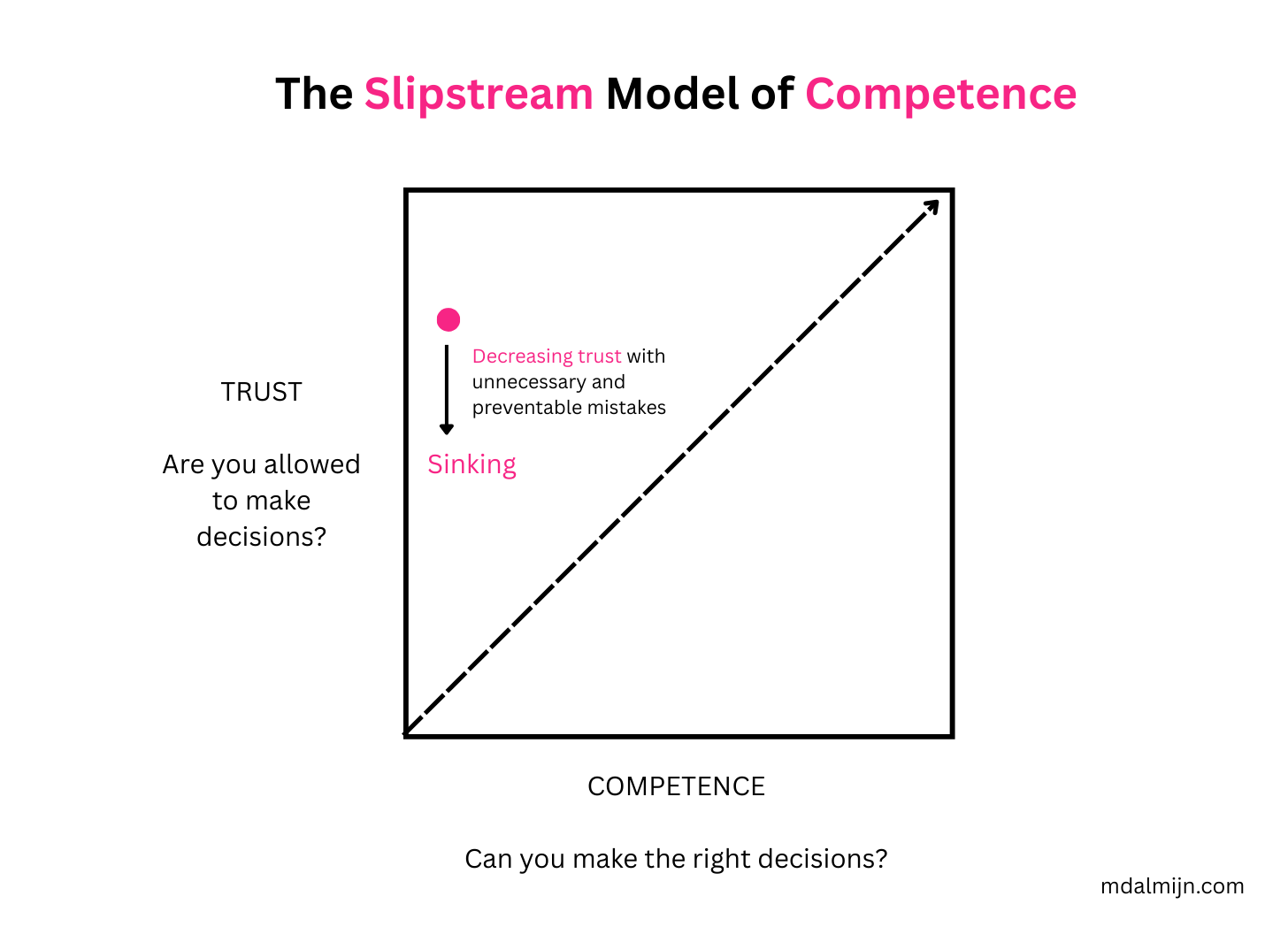 As your competence drops, it will be more difficult to create trust and escape towards the Slipstream of Trust again.