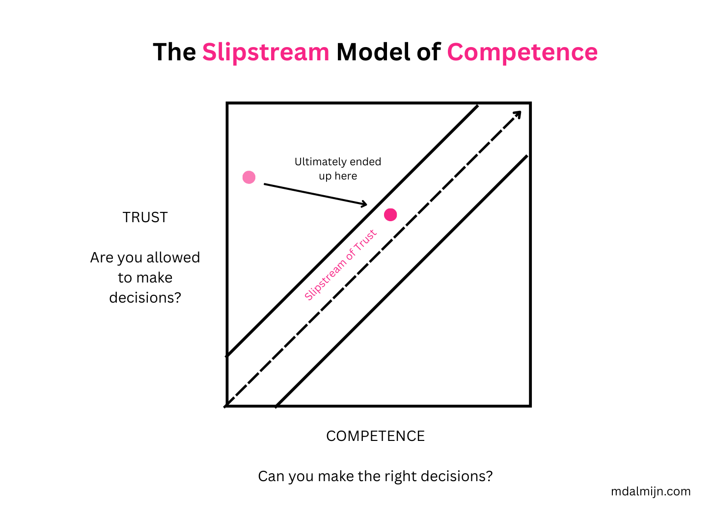 As a result, at some point I ended in a comfortable place: The Slipstream of Trust. This is the place you want to be most of the time. You want to experience slightly more trust than you deserve. Being in the Slipstream of Trust means you can grow your competence further and earn even more trust than you’re currently deserve.