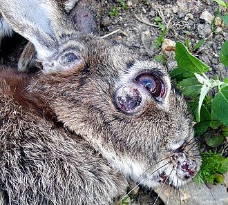 If you want to have an idea of how far they were willing to go. Hereās a picture of a rabbit with Myxomatosis:
