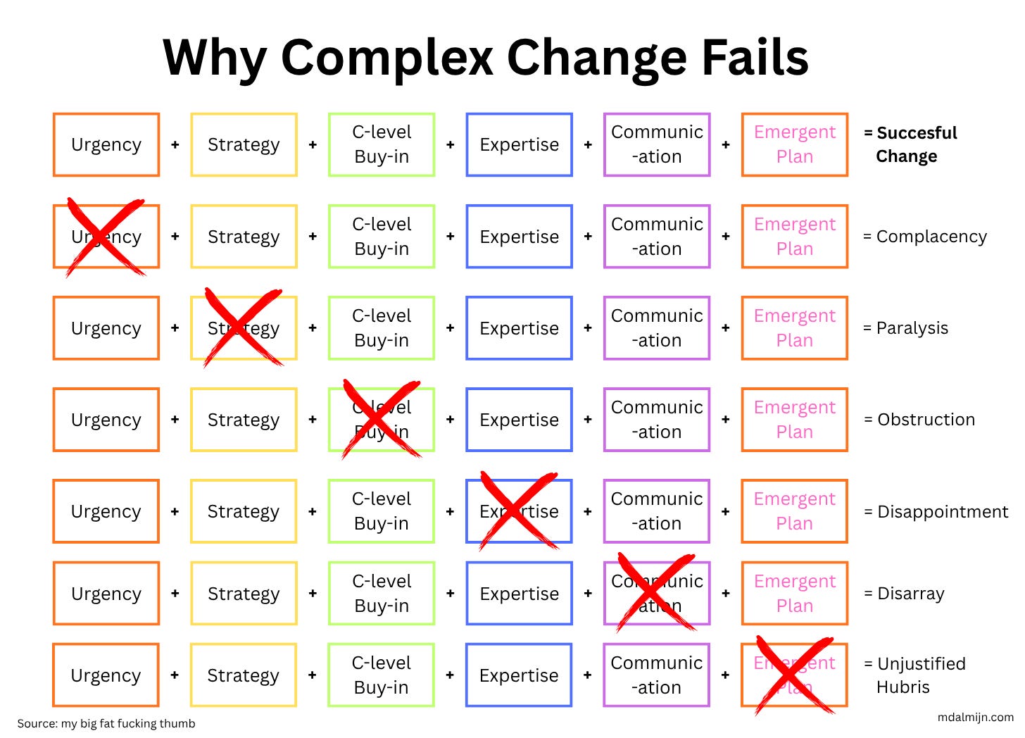 There are infinite reasons why a complex change can fail. There are far fewer ways it can succeed.